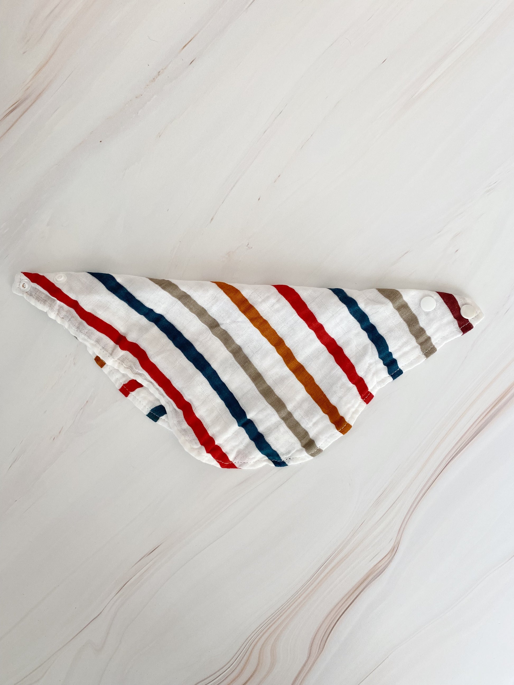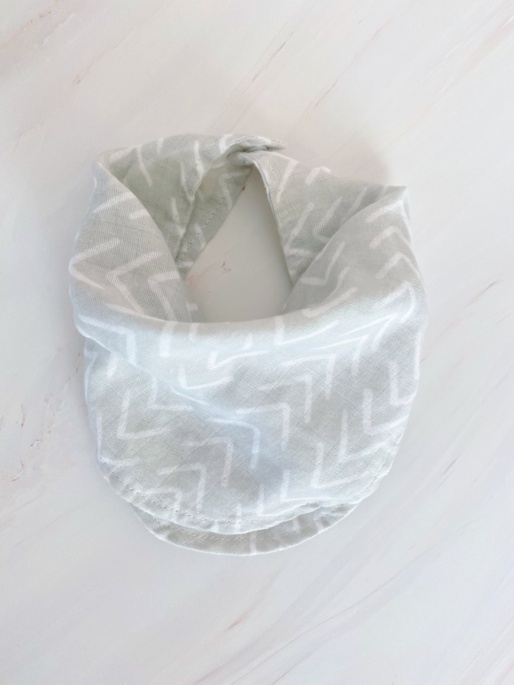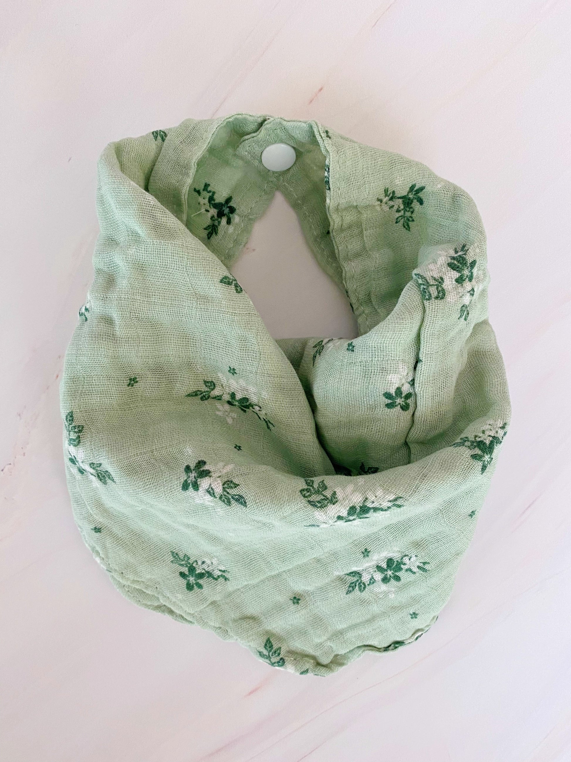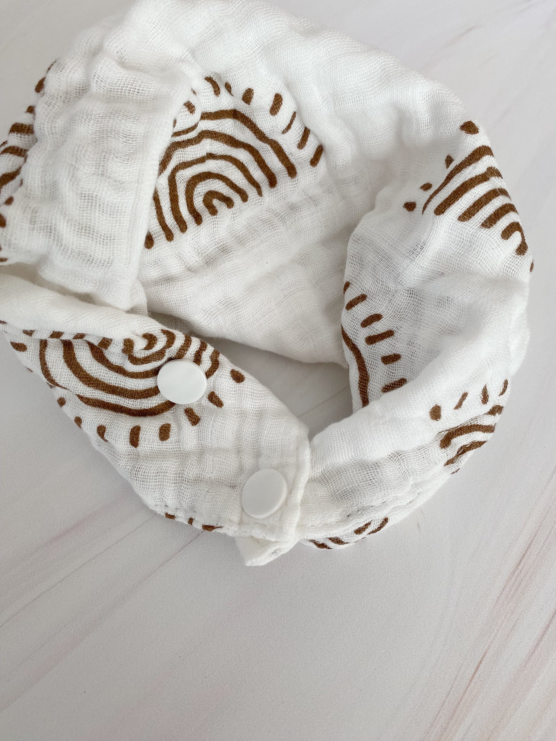 Babero de tela de muselina ajustable con broches.