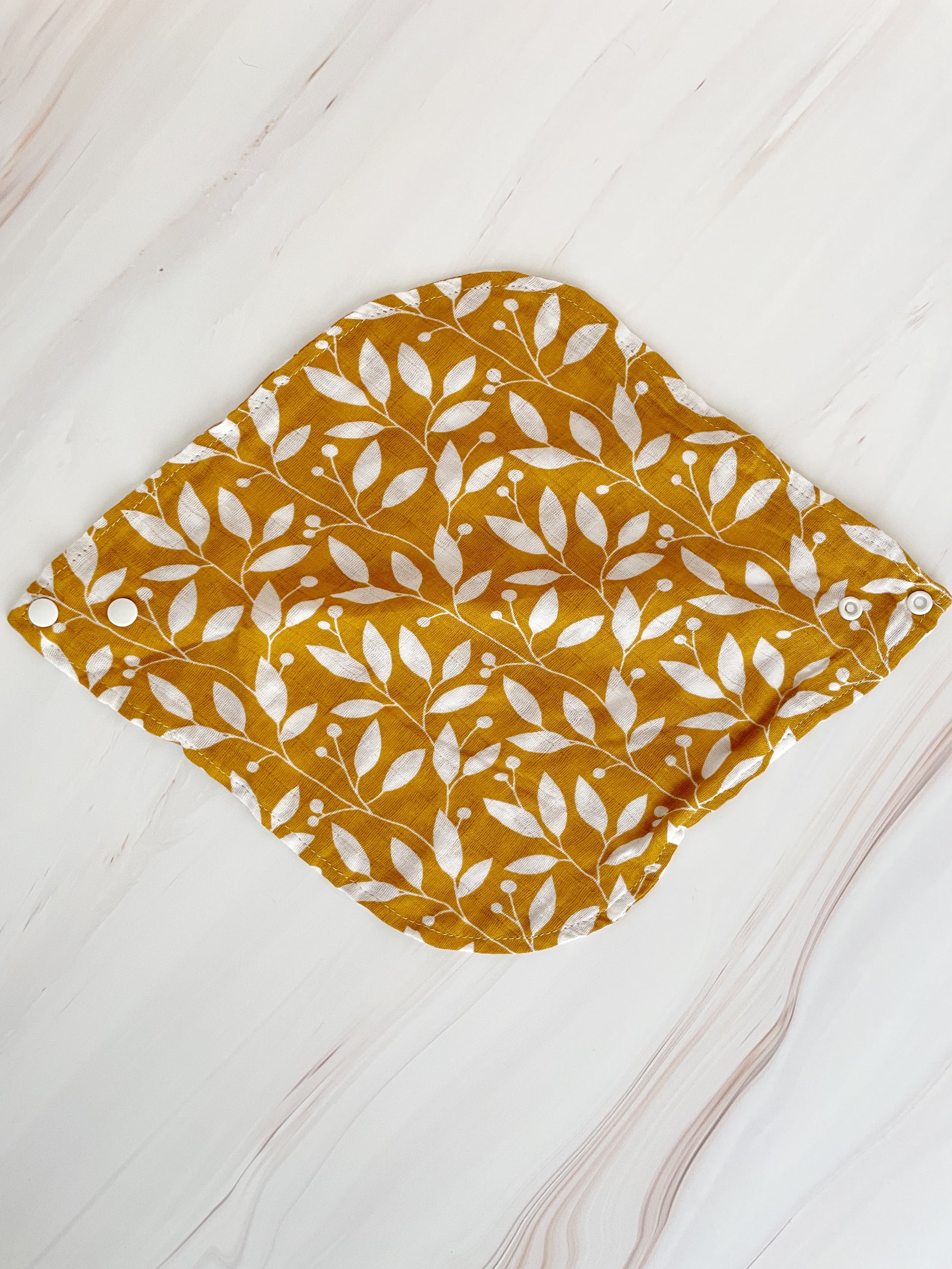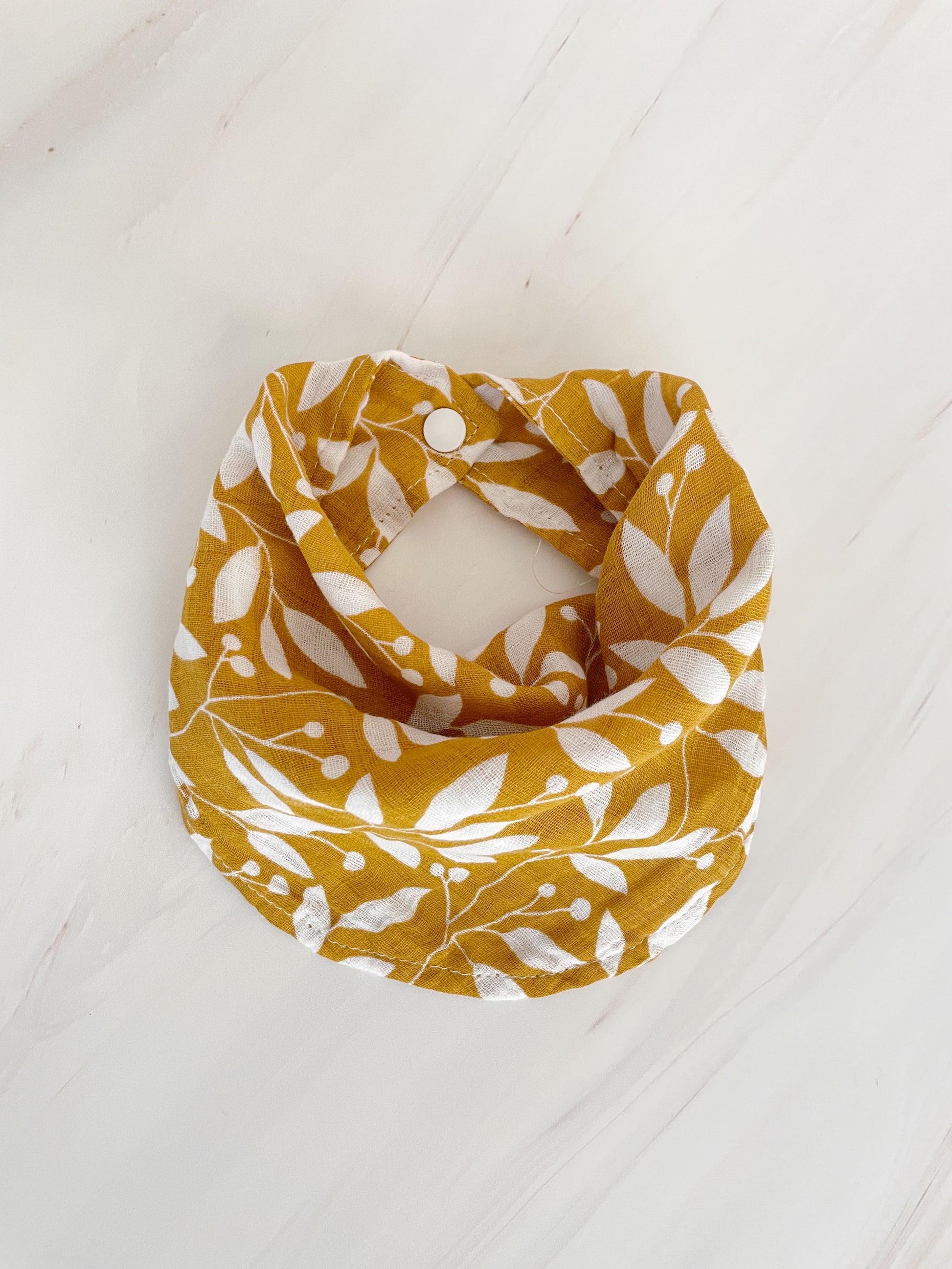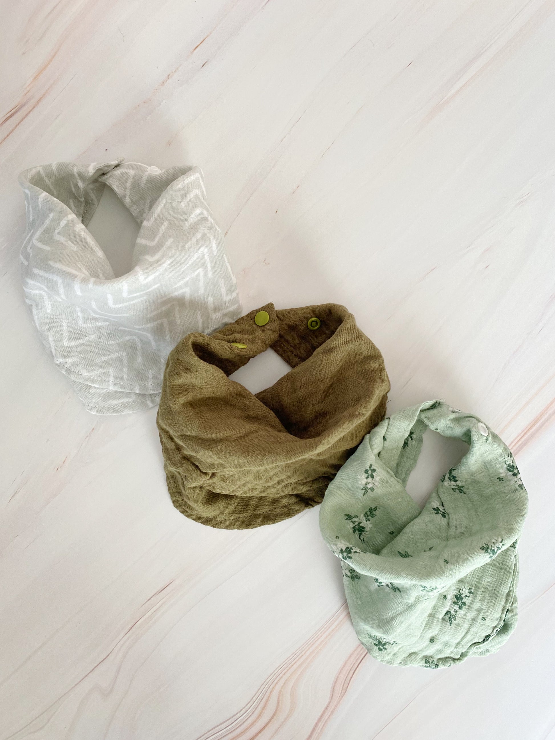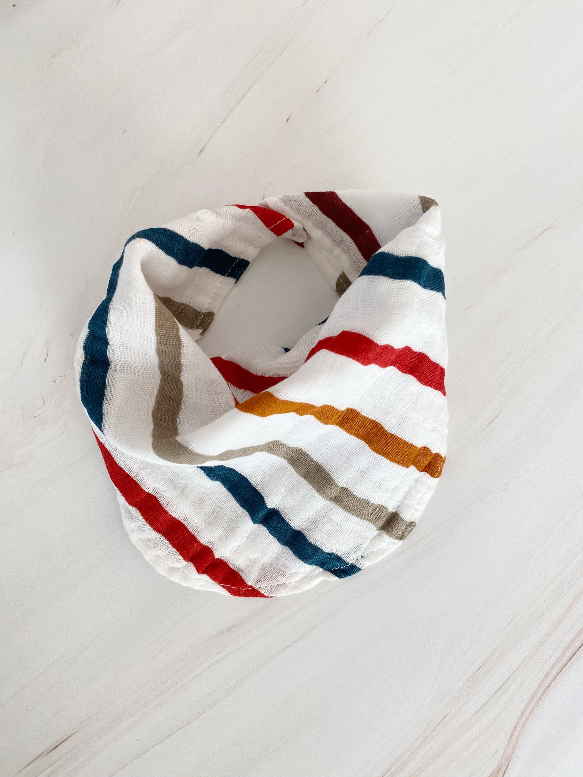 Babero de tela de muselina ajustable con broches.
